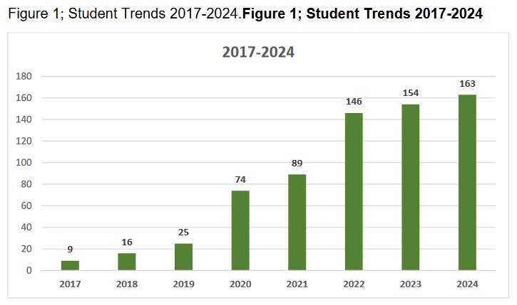 The school was founded by Ms. Delphine Mselle in 2016. It started as a Hostel that accommodated boys studying at the Chief Dodo secondary Government School. It was hard to run due to financial constraints that made the owner shift to an English medium primary school in 2017. The primary school started with one class that registered 9 kids 2017 who started kindergarten. The number of children kept increasing steadily from one year to another (figure 1). Most of these pupils (67%) moved from the owners’ home in Arusha and neighborhood houses who were living in total poverty. It was hard to provide holistic support (clothing, food, learning materials, medications, etc) however, the owner had to sell her properties to develop the school while managing the school at the same time.